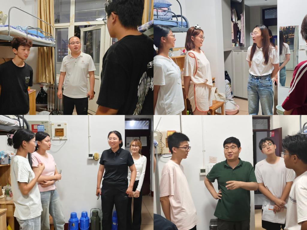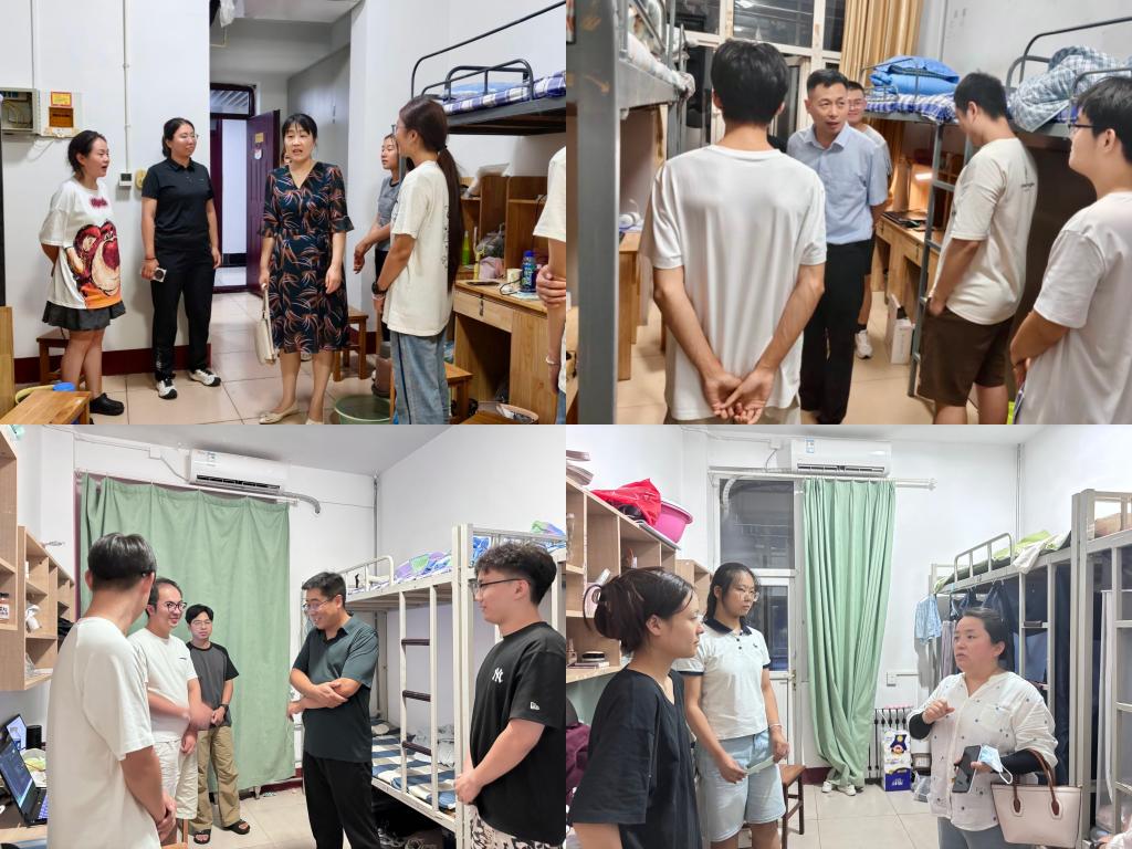 党委书记张明洁、党委副书记孙旭春、副院长尚军亮、团委书记刘兆宇、研究生辅导员程荣花、本科生辅导员孙泽玮、杨丹丹、王晓一行走访了2025级新生宿舍。