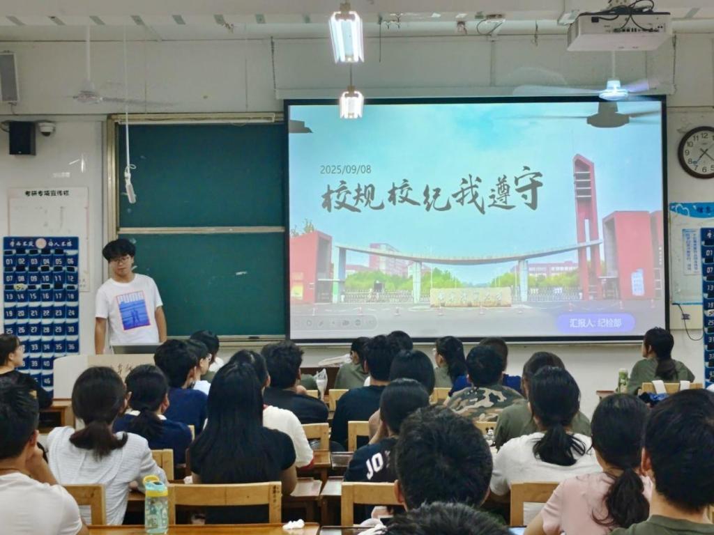 在25级各班教室举办校规校纪学习和警示教育活动,由纪检部主讲,全体新生参加。