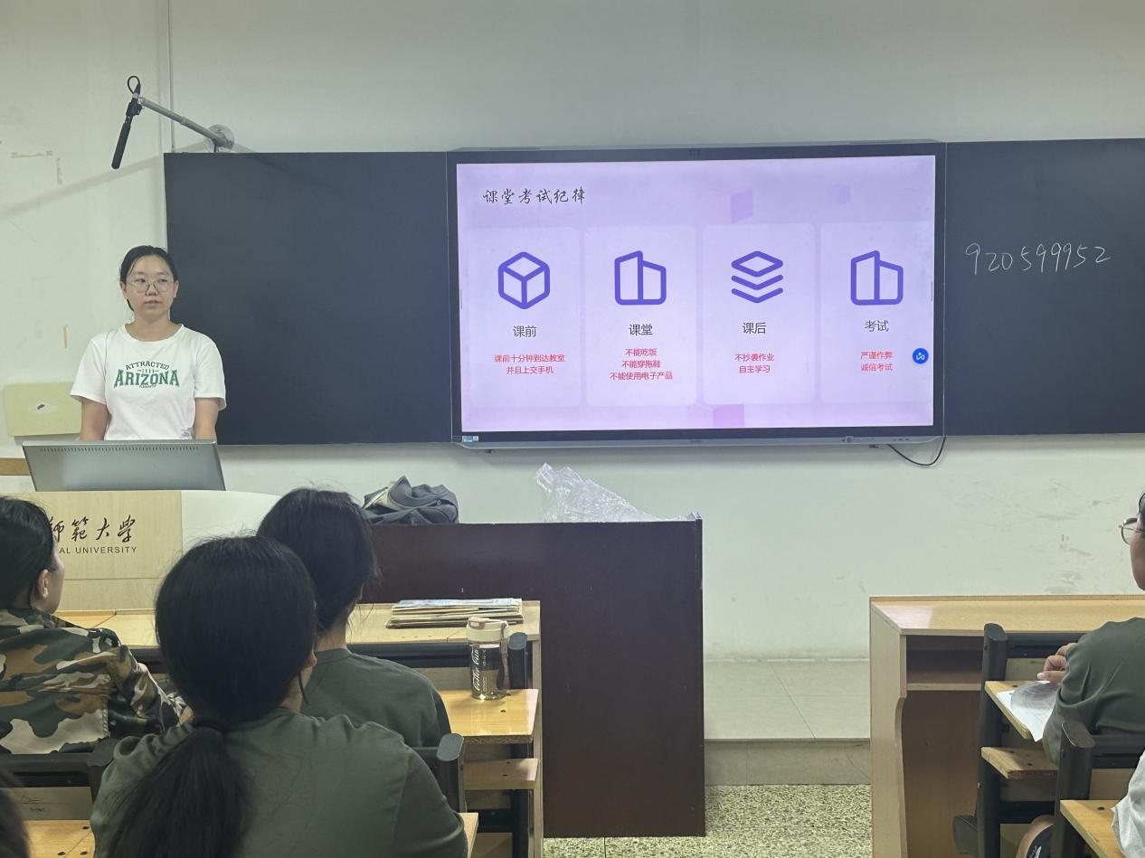 会上,主讲人从校规校纪出发,系统性介绍了校园纪律、考勤制度、行为规范等规定。针对校园纪律,强调了课堂考试纪律和宿舍管理的要求,助力新生树立牢固的纪律意识;针对考勤制度,明确了迟到、早退、旷课等行为的界定及其相应后果,引导新生重视日常考勤管理;针对行为规范,提出了“十不”行为规范,倡导新生遵守社会公德、尊重他人,共同营造一个文明和谐的校园环境。