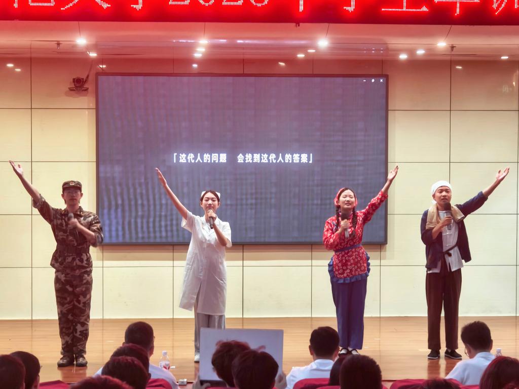 代表队以《那年青春正十八》为主题,运用创新性的多视角叙事,生动展现了不同时代背景下青年人的责任与担当。四位选手配合默契,以饱满的情感、流畅的表达和富有感染力的舞台表现,赢得了评委和观众的一致好评。