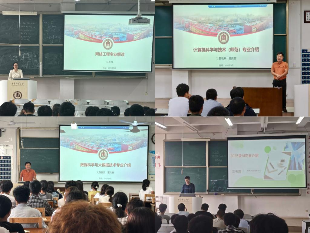 为帮助2025级新生准确把握培养要求、科学规划学业生涯,2025年9月22日至30日,我院计算机科学与技术、网络工程、数据科学与大数据技术、人工智能四个专业分别举行了2025级新生培养方案解读会,系主任董兆安、雷玉霞、马春梅分别主持了各专业解读会。