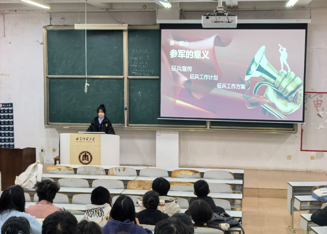 于2025年10月29日面向全院学生举办了年度征兵工作专题宣讲会。本次宣讲旨在精准解读政策,激发学子参军热情,重点动员应届毕业生携笔从戎,报效国家。