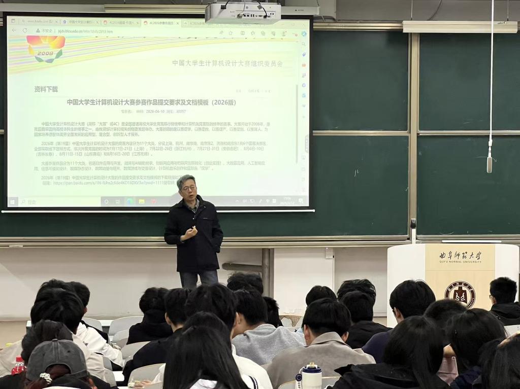 最后,刘智斌老师强调计算机设计大赛是培养学生创新精神和实践能力的重要平台,希望同学们能够珍惜这次机会,积极报名参赛,在比赛中锻炼自己、提升自己。
