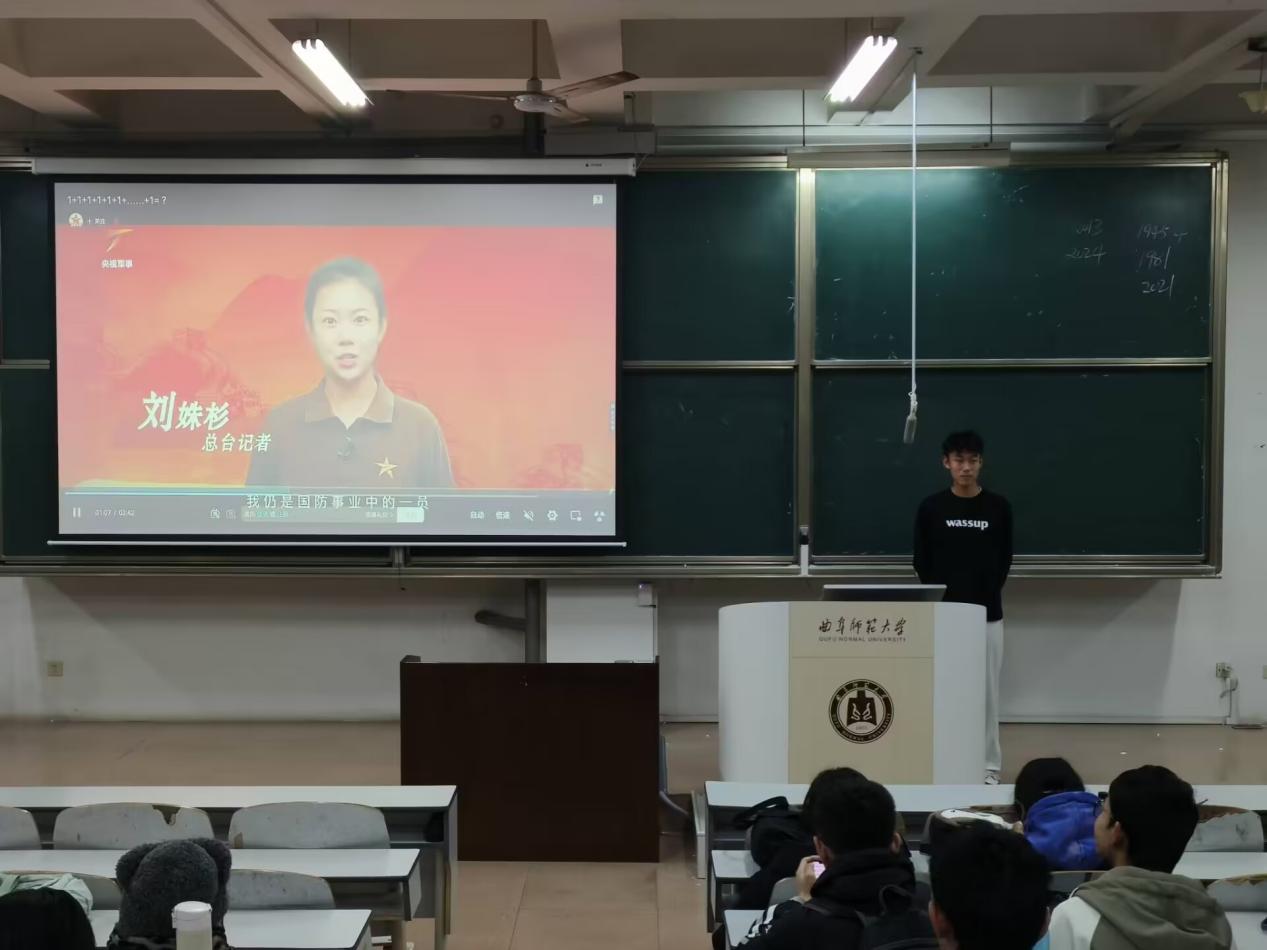 图3.组织委员为同学们进行国防安全知识讲解