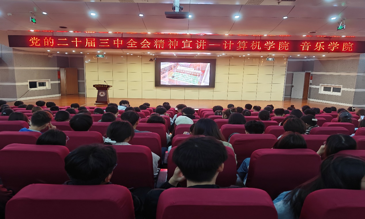 联合音乐学院在图书馆报告厅举行党的二十届三中全会精神宣讲活动。本次宣讲邀请到了来自政治与公共管理学院的宣讲团队主持,2024级、2023级和2022级学生代表参加。