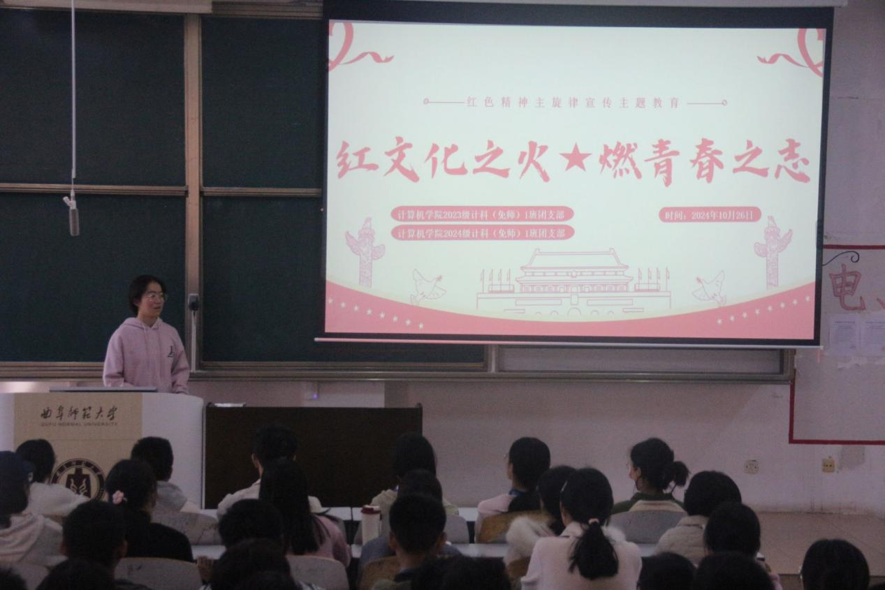 活动伊始,2023级计科(免师)1班团支书杨潇文简要地阐述了本次团日活动的重要意义,并详细介绍了活动流程,正式拉开这场红色文化盛宴的序幕。