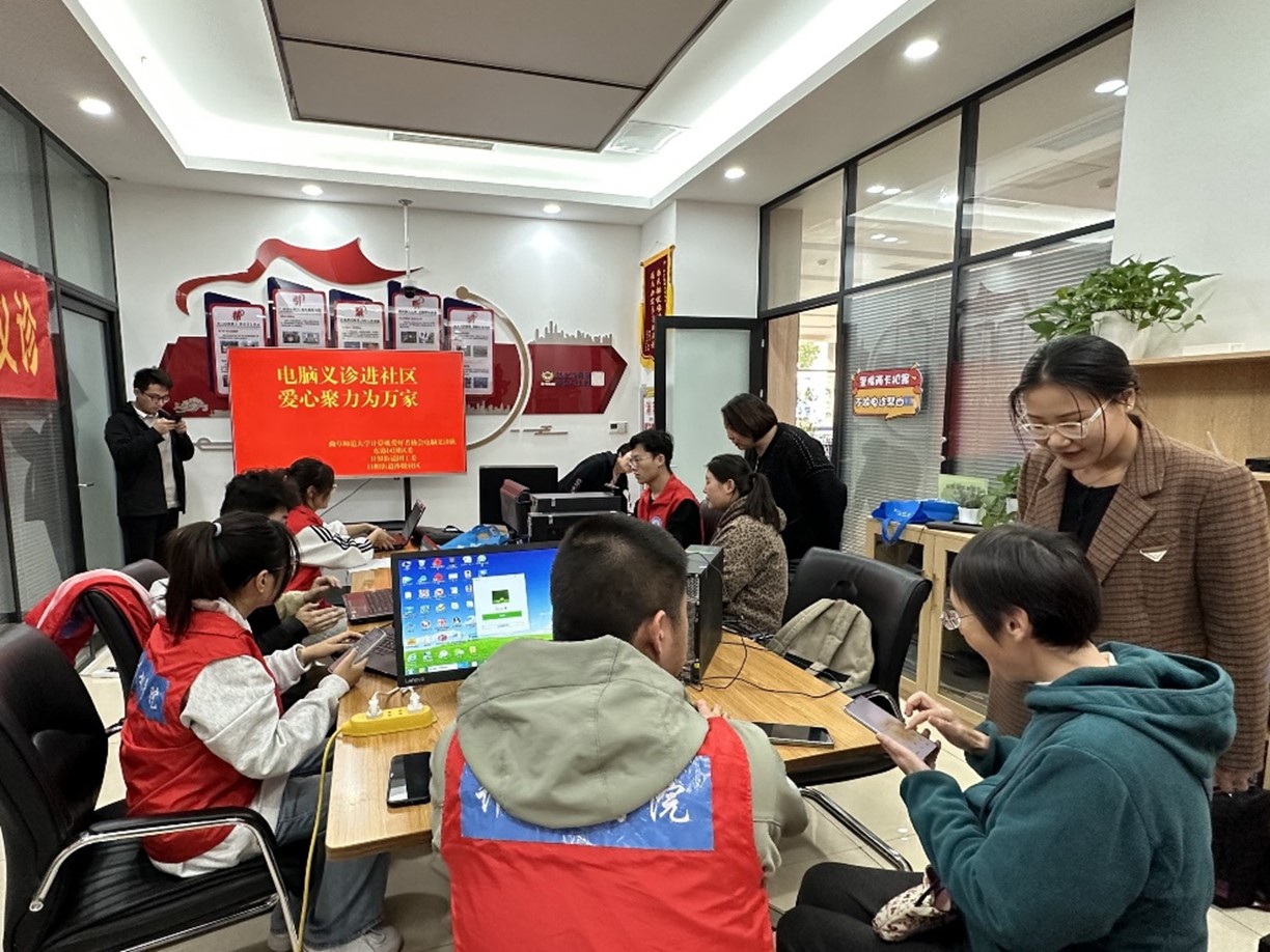 师生的专业素养和社会责任感,同时也为社区治理融入了青春活力。同时,未来我院也会继续坚持进行电脑义诊进社区的活动,将专业知识转化为服务社会的实际行动,推动“大学+城市”的进一步融合发展,助力地方信息化建设,提升居民的数字素养和生活质量,为构建和谐社会贡献青春力量。