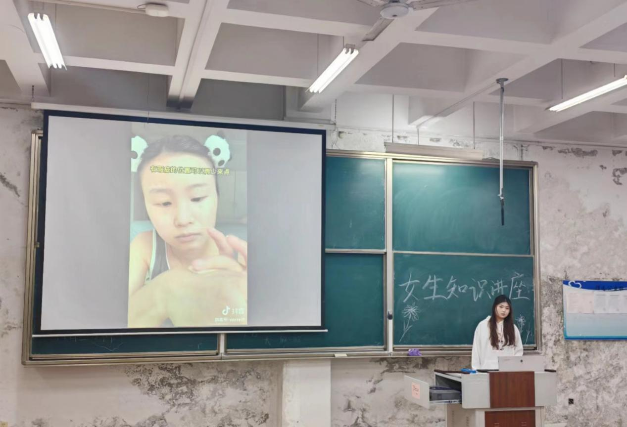 讲座伊始,主持人给大家介绍了女生在日常生活中该如何保护自己,着重强调了用电安全和出行安全。如不要在宿舍使用吹风机、热得快等大功率电器,离开宿舍时要将充电宝等物品拔电。走路时不看手机,骑车时戴好头盔,不闯红灯,也不在绿灯的最后几秒疾行等。