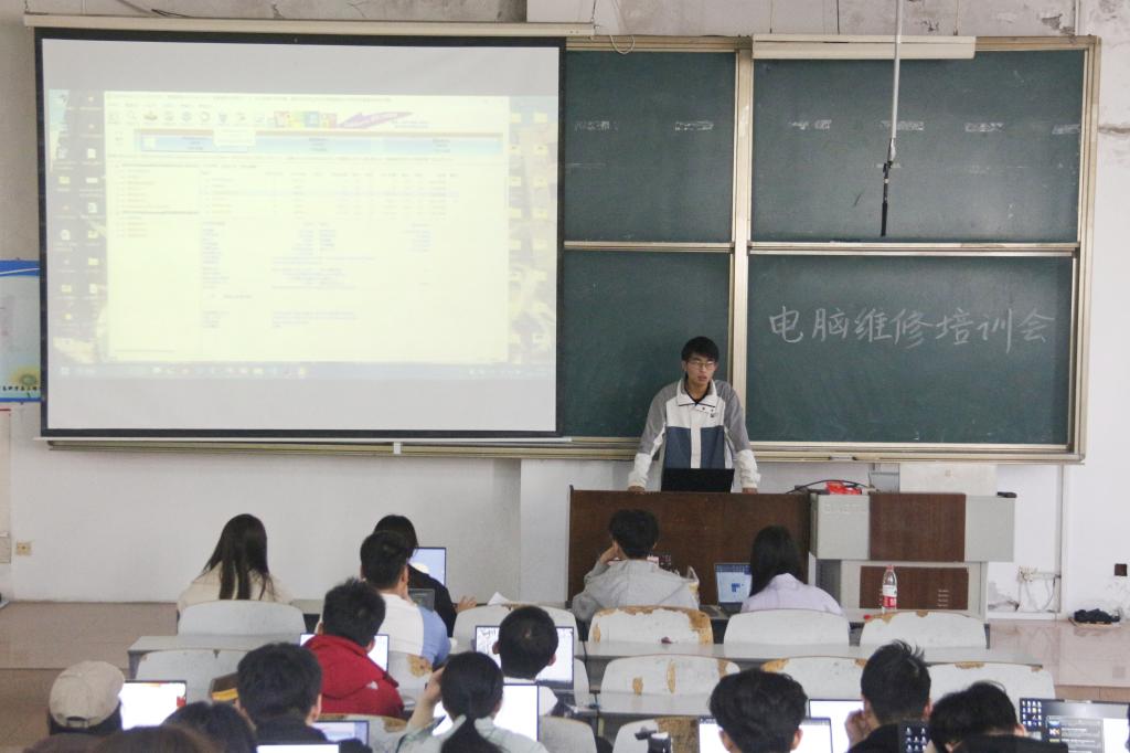 于2023年4月16日上午10点在JE104教室开展了“电脑维修进园区,志愿服务传真情”活动的电脑维修培训会。
