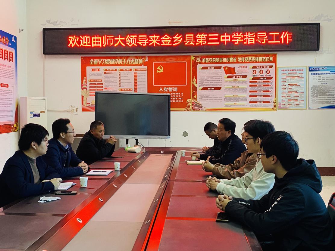 学院老师随后来到金乡县第三中学,走访时,校长李伯元向学生着重强调了安全、纪律等注意事项,并对同学们提出几点要求:第一,认真学习,多学多问,掌握过硬的技能知识;第二,遇到问题和困难时,要学会及时沟通,并注意沟通的方式方法,展现出积极解决问题的良好品质;第三,实习实践的时间是宝贵的,同时也非常辛苦,要合理规划自己的时间,结合自身情况找准定位。王广振主任强调了实习的重要性,学校非常关心爱护实习生们,希望同学们重视实习、加强学习,以热情饱满的态度投入实习工作当中,更好地促进自身生活能力的提高和教学技能的进步,不辜负学校的期望。