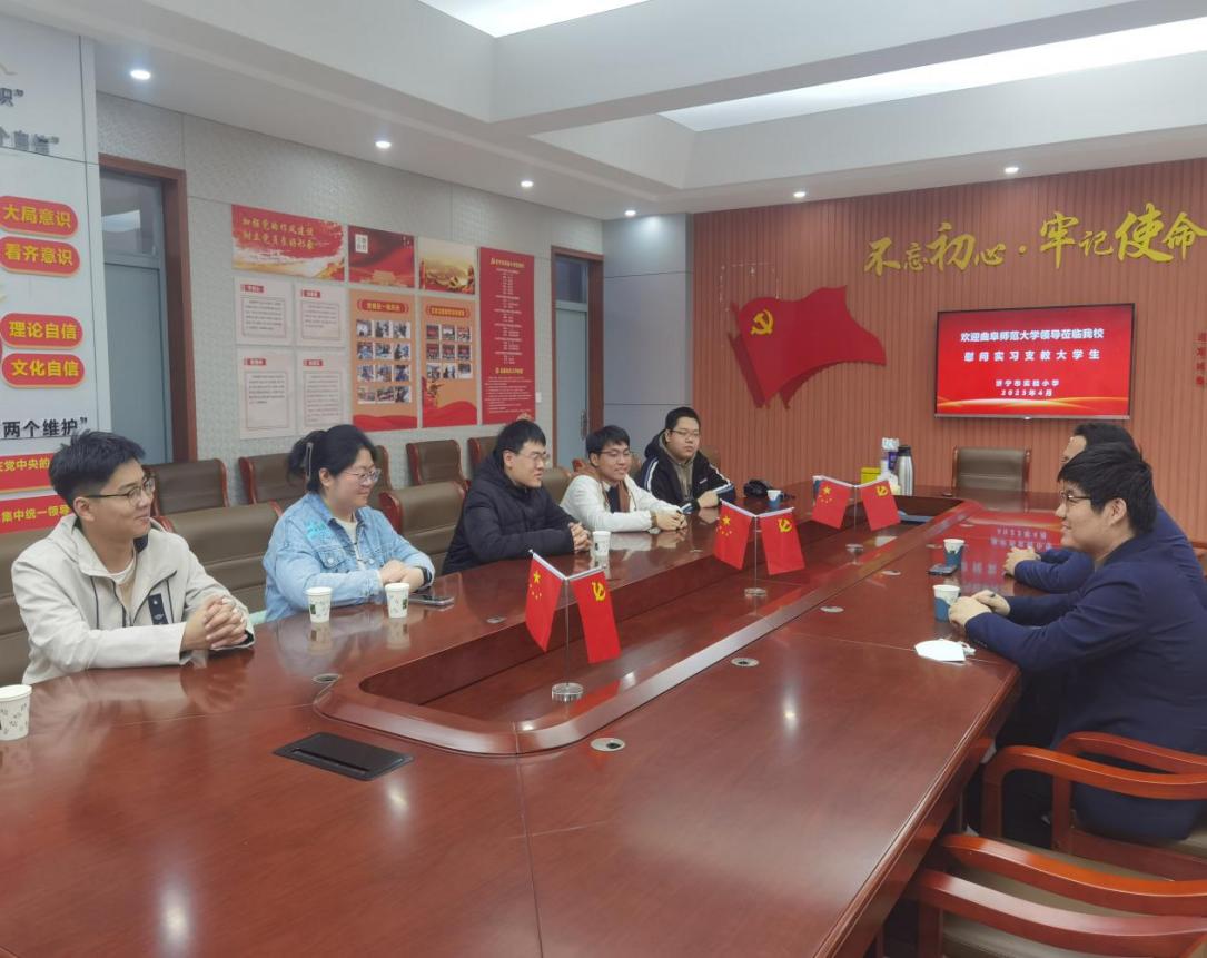 在走访济宁市实验小学的过程中,老师们首先实地察看了学生实习的工作生活环境,详细询问了实习学生的工作情况、生活状况以及在实习中所遇到的问题;接着与朱瑞礼校长、赵华一主任共同召开座谈会,深入了解学生在实习期间的工作表现及存在问题,针对学生所提出的疑问进行解答,对存在的问题进一步与实习单位共同商讨,提出整改措施。在与学生的面对面交流中,实习学生积极分享自己的实习感悟,就工作中的问题向老师请教。