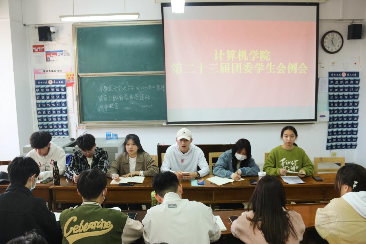 在JC402召开团委学生会例会。学生会成员,各班班长与团支书参加会议。
