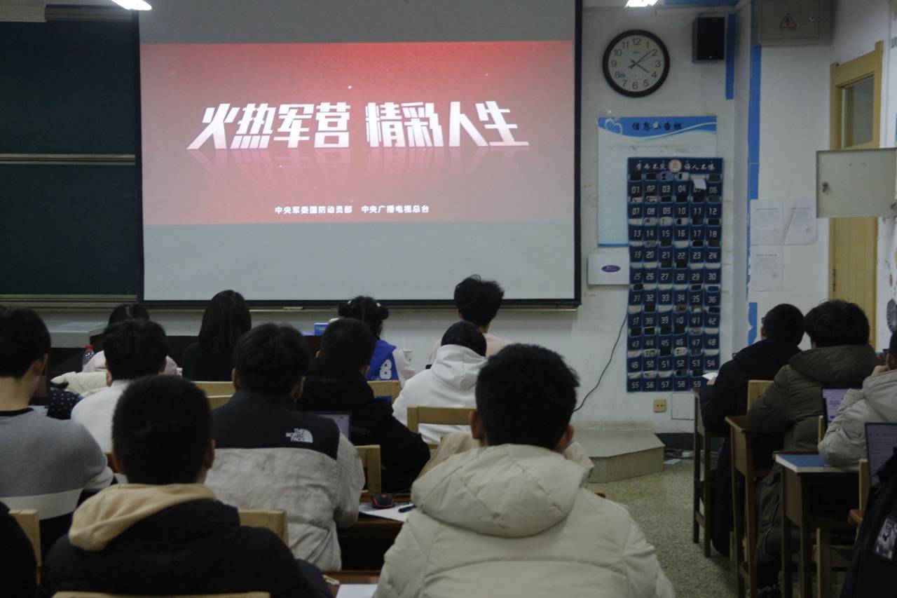 一直以来高度重视征兵工作,通过征兵宣传、征兵服务、军事理论课、军训等途径,提升大学生征兵宣传深度和广度,此次征兵宣传片组织收看活动,要求以班级为单位组织全体学生收看宣传片《火热军营 精彩人生》,该片采用小切口大主题的形式,生动展现国防和军队现代化建设成就,以及新时代革命军人保家卫国的使命担当,弘扬热血青年追逐青春梦想、投身强军兴军的家国情怀,着力展示军营大学校对新时代青年的人生塑造,倾情表达青春由磨砺而出彩、人生因奋斗而升华的思想意境,生动反映矢志报国、一生无悔的征兵宣传主题。