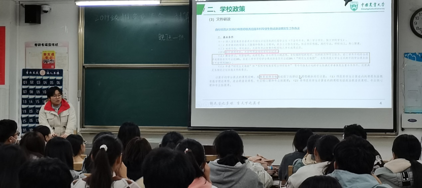 会议伊始,冯靖靖同学结合自身经历,详细介绍了推免流程,推免途径和所需材料准备以及面试过程中可能会面对的问题。紧接着田雨鑫和张雨露学姐对各阶段具体准备工作做了细致的陈述,并都介绍了科研训练计划以及夏令营的参与事宜,并且着重强调了每一门学科的学习和英语四六级的重要性,并建议同学们用开放的眼光看待学校的选择,不拘泥于客观因素,稳扎稳打,脚踏实地,才能取得令自己满意的结果。