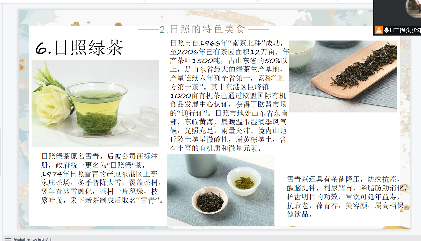 会上,由刘一岩同学向新生介绍日照的历史文化及地理信息。日出曙光先照,刘一岩同学围绕日照的地理信息、旅游景点、特色美食进行了详细的介绍。刘一岩同学表示,希望同学们能够保持良好的学习、生活、工作方式,来迎接自己人生中的一切挑战。像海燕一样,直面所有的艰难险阻。