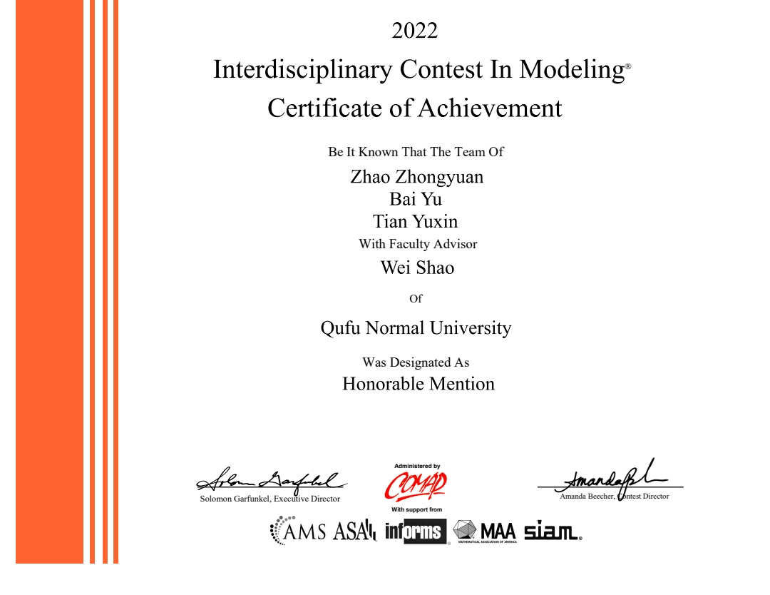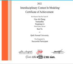 5月6日,2022年美国大学生数学建模竞赛(MCM)评奖结果揭晓。我院学子表现优异,由冯靖靖、李婉钰组成的参赛队伍荣获一等奖,另有3个参赛队伍荣获二等奖,11个参赛队伍荣获三等奖。