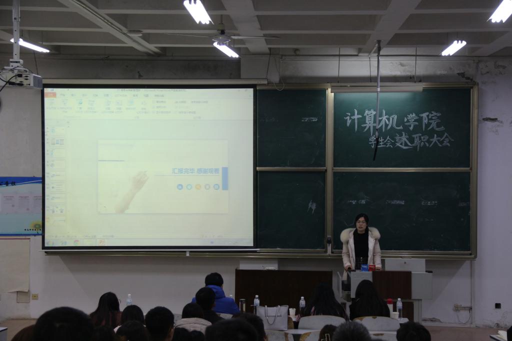 会议伊始,各部门部长按顺序上台进行述职,以PPT的形式分别对自换届以来的部门工作进行总结,对包括部门职责和具体工作内容以及下阶段工作展望做出概述,并对本学期部门工作不足进行了详细反思。各部门部长的述职充分展现了部门特色及风采。最后,于运清老师进行大会总结,对我院学生会今后工作提出希望和要求,会议圆满结束。