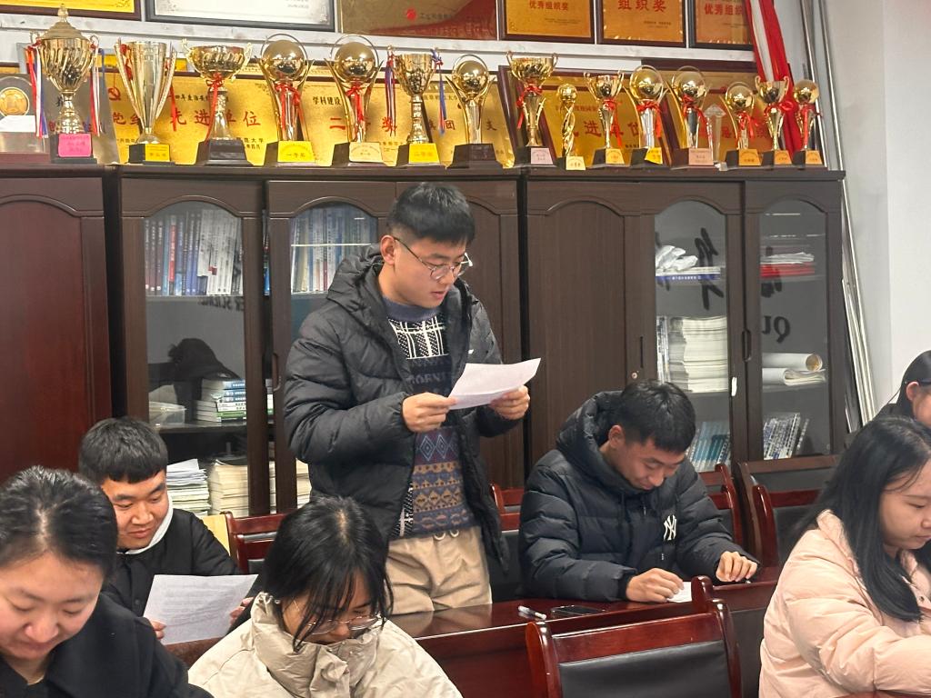 会议第二项,开展2023年度民主评议党员工作。首先,由党支部书记程荣花老师对研究生第三党支部2023年度党建工作进行了总结汇报。程老师指出,2023年,研究生第三党支部在学校和学院党委的正确领导下,以习近平新时代中国特色社会主义思想和党的二十大精神为指导,在认真贯彻落实各种文件政策的基础上,结合支部自身实际情况,积极推进支部思想建设、组织建设和队伍建设。在支部党员的共同努力下,圆满完成了2023年党支部建设各项工作任务,充分调动了全体党员的积极性和创造性,推动了支部建设工作顺利开展。程老师表示,支部建设工作还存在不足,在今后的工作中,我们要凝心聚力,认真学习理论知识,紧跟时代步伐,顺应实践发展,以满腔热忱对待一切新生事物,不断拓展认识的广度和深度,以新的理论指导新的实践,不断创新工作方法,推动支部建设不断取得新进展新突破。接着,党员们对照党员标准、对照教育实践活动要求进行自评和互评,本着对组织负责、对同志负责、对自己负责的原则,实事求是地对自己和其他党员做出客观评价。