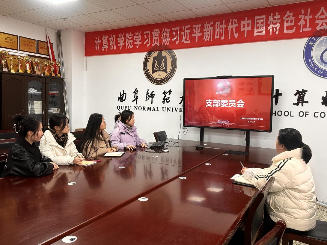 2024年3月7日,斗地主 研究生第三党支部于JC1011召开支部委员会议,会议由第三党支部副书记李苗苗主持,支委会党员参会。