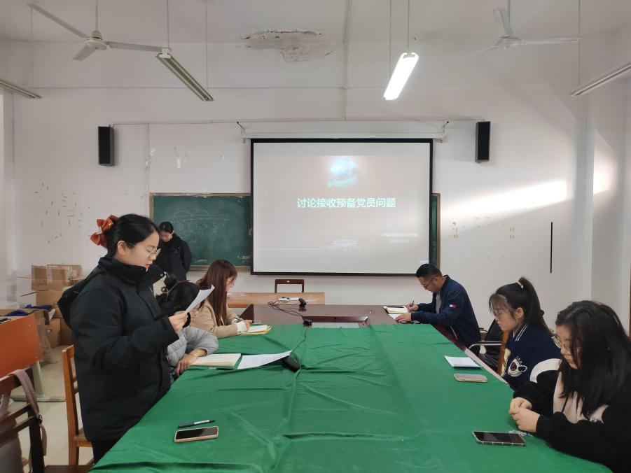 2023年11月16日,斗地主 研究生党支部于JS410会议室召开主题党日活动,会议由学习委员王玉霞主持,研究生党支部党员参加本次活动。