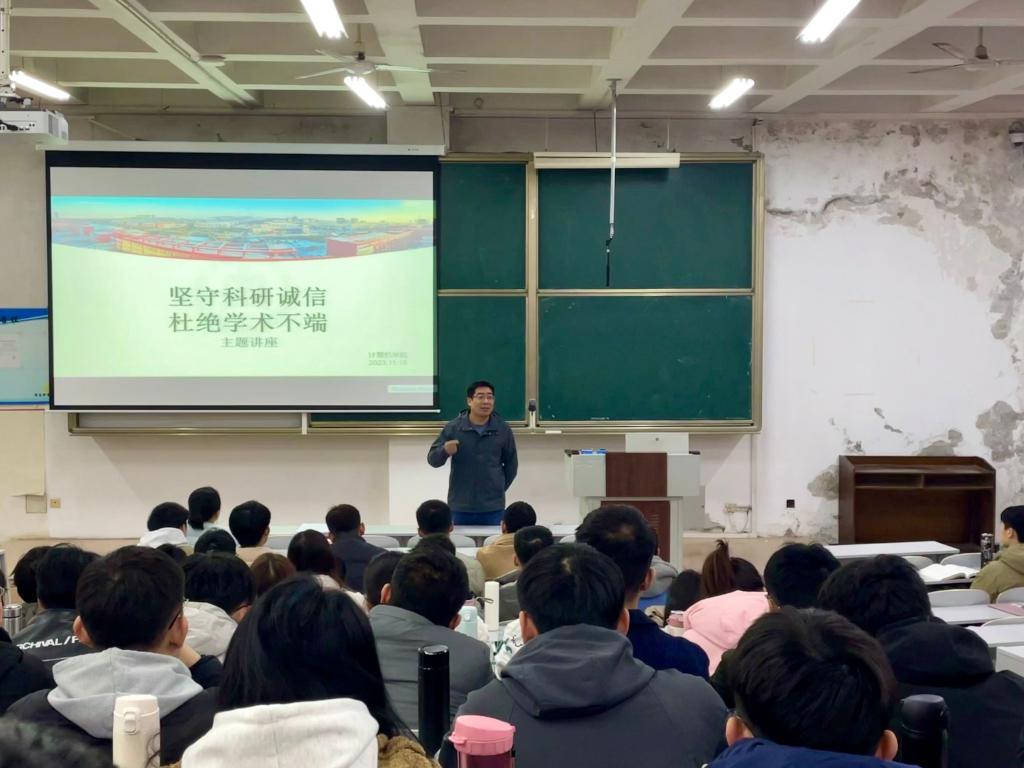 为提升我院研究生科研诚信意识,守住学术道德底线,11月15日,斗地主 在JE104教室召开“坚守科研诚信,杜绝学术不端”主题教育会议。副院长尚军亮老师、研究生辅导员程荣花老师、研究生会部分学生干部及2023级全体研究生参加本次会议。
