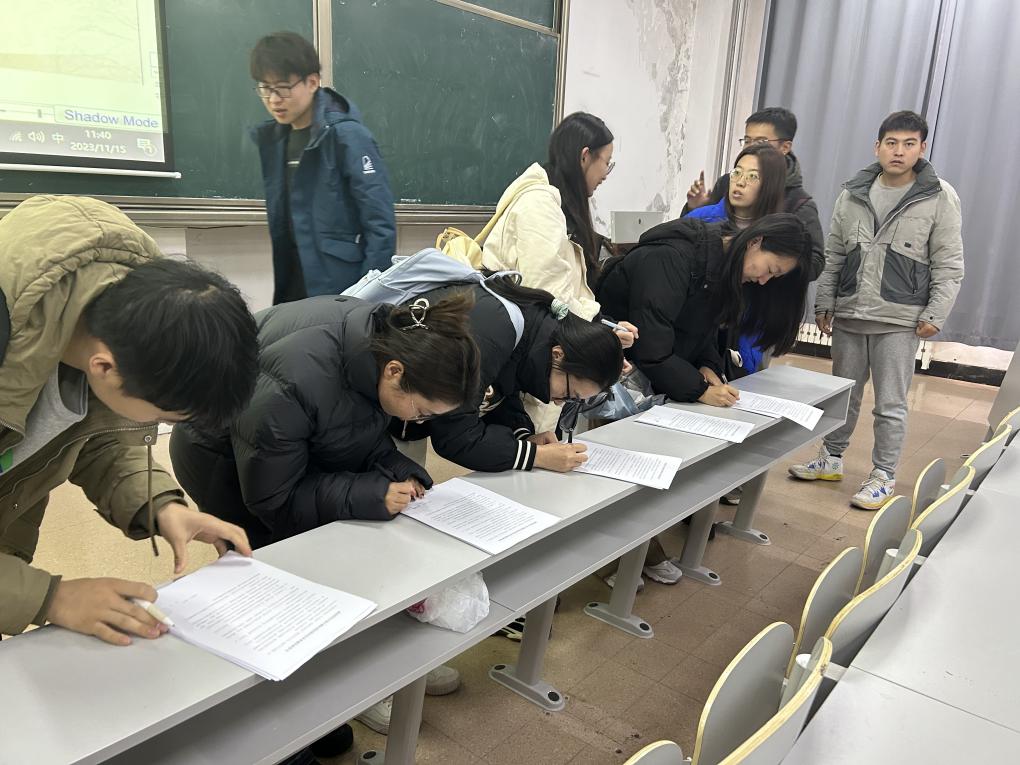 图5.2023级全体同学有序签署了《斗地主 诚信科研承诺书》 (1)