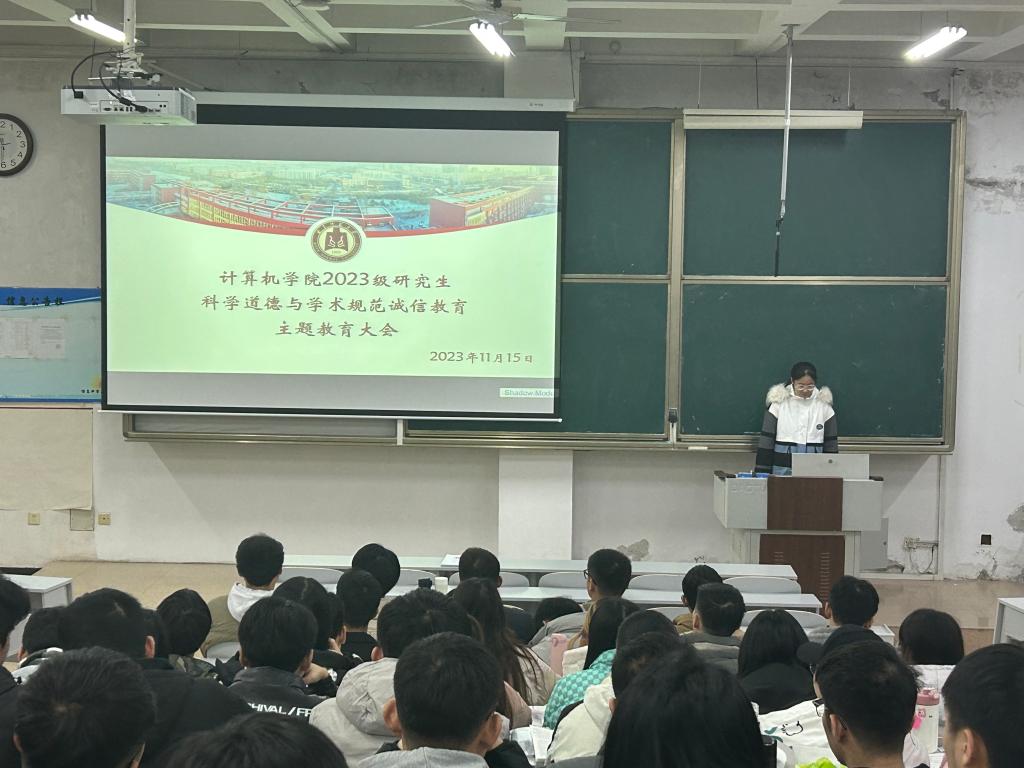 接着,2022级计算机技术专业李思恩同学向2023级研究生分享自己在论文撰写和投稿过程中的心得体会,为同学们撰写论文提供经验和方法。随后,宣传部部长张玥恒带领大家共同学习了科学道德与学术规范的概念和相关条文法规、学术腐败与学术不端行为及其产生的后果等内容。会议最后,研究生会主要学生干部组织2023级全体同学有序签署了《斗地主 诚信科研承诺书》。