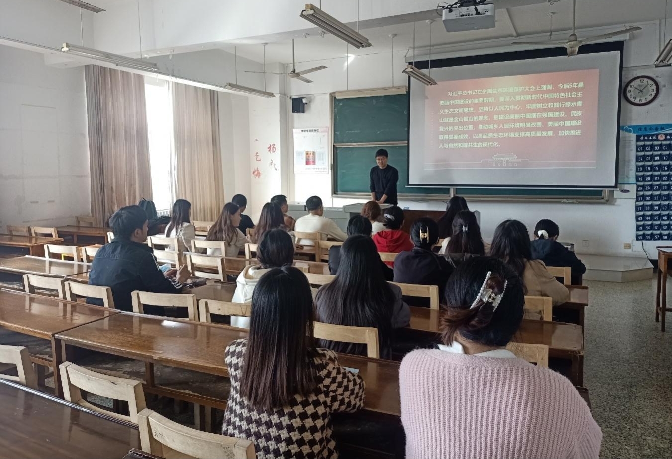 最后,党支部书记葛道辉老师对此次主题党日进行总结并强调,党员同志们通过此次学习充分了解了推进人与自然和谐共生的现代化的重要性,并学习了全面推进美丽中国建设的战略任务和重大举措。绿水青山就是金山银山,党员同志们必须把思想和行动统一到习近平总书记重要讲话精神和党中央决策部署上来,深刻领悟“两个确立”的决定性意义,坚决做到“两个维护”,牢记“国之大者”,进一步激发做好生态环境保护工作的强大动力,以“时时放心不下”的责任感、积极担当作为的精气神,扎实推进生态文明建设,绘出美丽中国的更新画卷。