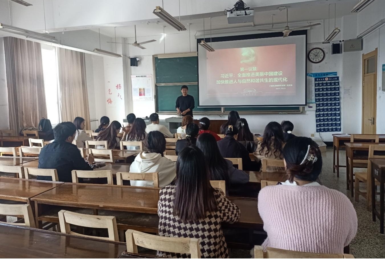 研究生第二党支部于JC412教室开展主题党日活动,研究生第二党支部全体党员参加本次活动。活动由支部书记葛道辉老师主持。