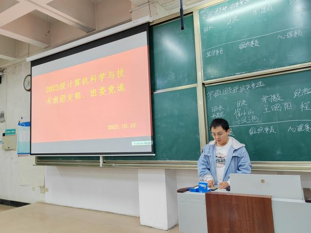 于JE104教室召开研究生团组织、研究生会纳新及2023级研究生团支部、班委竞选大会。研究生辅导员程荣花老师、研究生团组织、研究生会全体学生干部及2023级全体研究生参加此次会议,研究生会主席张晨主持会议。