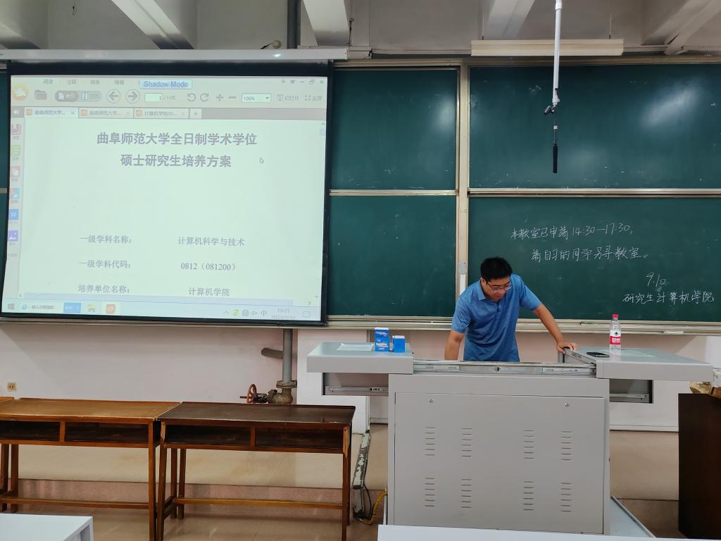 在全国、全省的发展情况,包括近年来的ESI排名、就业情况、教学团队培养、科研平台建设等方面,使新生对学院有了初步而系统的了解。随后,尚军亮老师又分别对学硕和专硕两个专业的培养方案进行了解读,向同学们详细介绍了各专业的培养目标、课程设置、考核形式、毕业条件等方面的内容,帮助新生了解研究生培养体系,引导他们对未来三年的学习生涯进行合理规划。