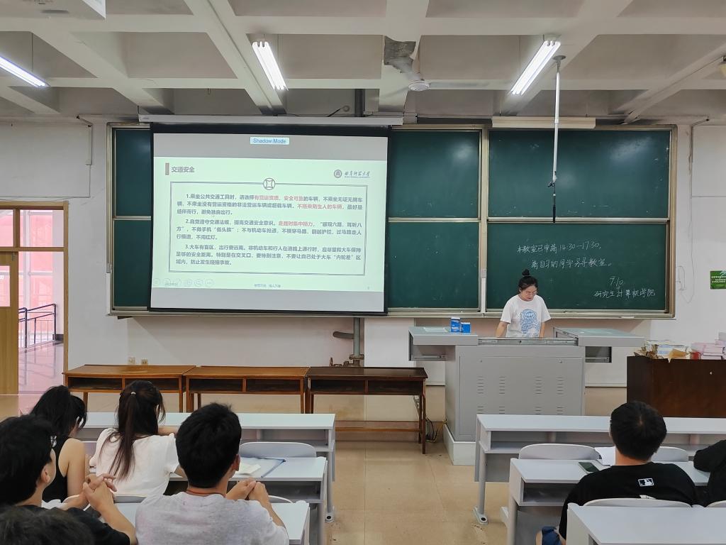 开展研究生安全教育,是我院研究生培养一直以来的重要内容之一,包括政治安全、人身安全、财产安全、交通安全、饮食安全、宿舍安全、实验室安全、防诈骗、防火防盗和防溺水等方面的教育。研究生会主席张晨同学带领与会研究生共同学习了交通、宿舍、实验室等方面的安全知识及国防教育,强调做好意识形态工作的重要性,要切实增强个人的法制观念和守纪意识,不断提高个人安全意识和防范能力。