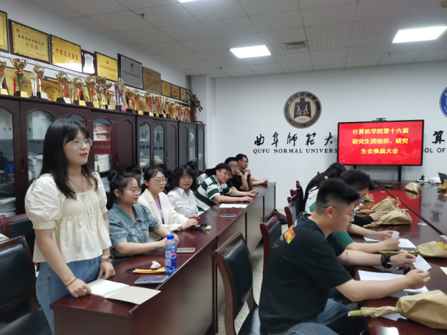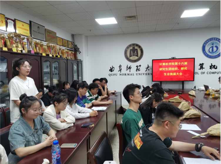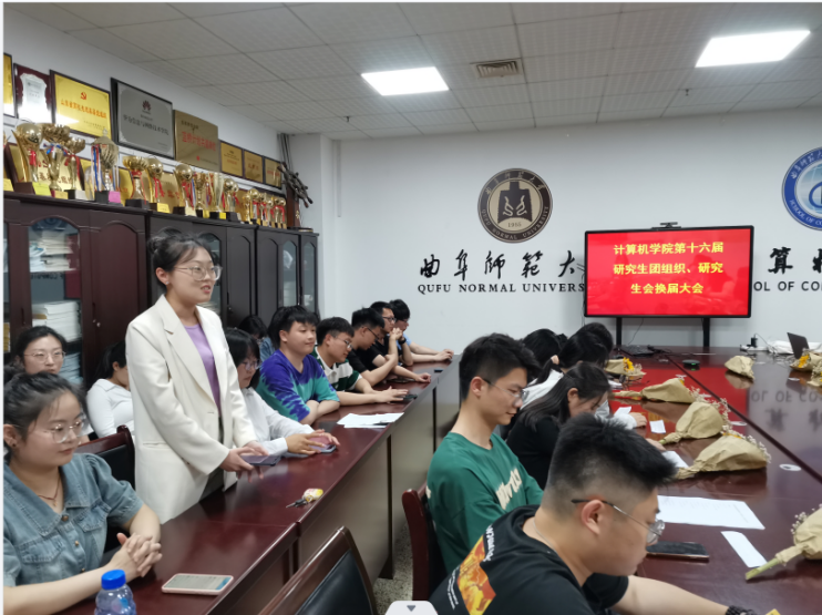 于6月1日晚在JC1011会议室组织召开第十五届团委研究生团组织、研究生会总结表彰大会暨第十六届换届大会,会议由研究生辅导员程荣花老师主持,斗地主