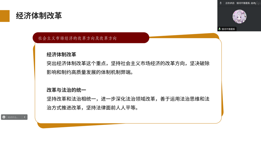 本科生第一、二、三党支部召开主题为《进一步全面深化改革中的几个重大理论和实践问题》的线上学习党日活动,会议由分党校秘书长赵冉主持,全体党员参加。