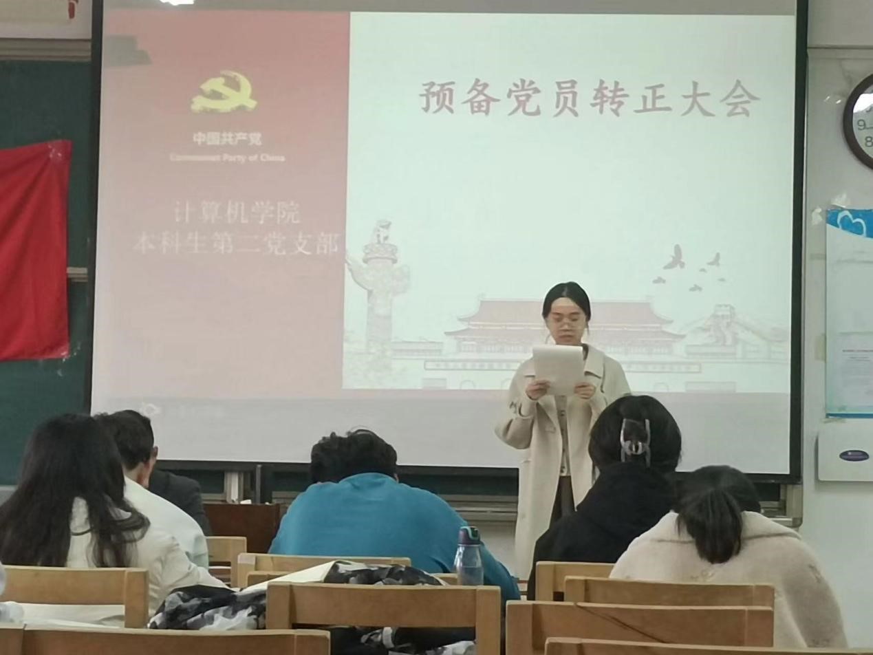 2023年11月27日下午,斗地主 本科生第二党支部于JC407召开预备党员转正大会。本科生第二党支部全体党员参加此次会议。会议由本科生第二党支部书记孙宇主持。