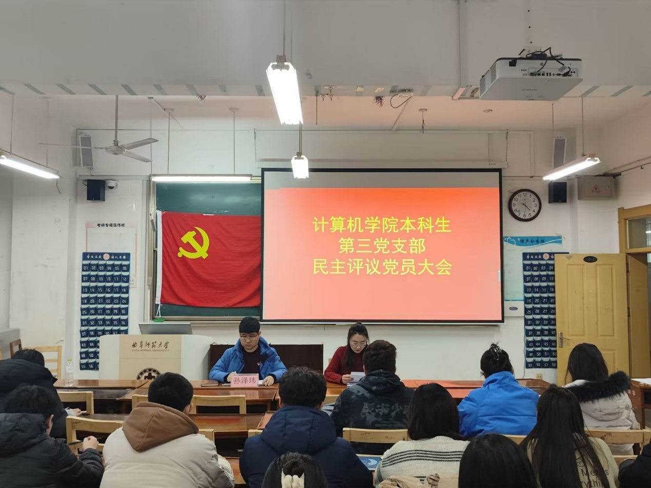 为深入学习贯彻党的二十大精神,进一步加强党支部自身建设,提升全体党员党性修养,2024年3月7日下午4:30,斗地主 本科生第三党支部于JC408开展2023年度民主评议党员会议,第三党支部全体成员参加。
