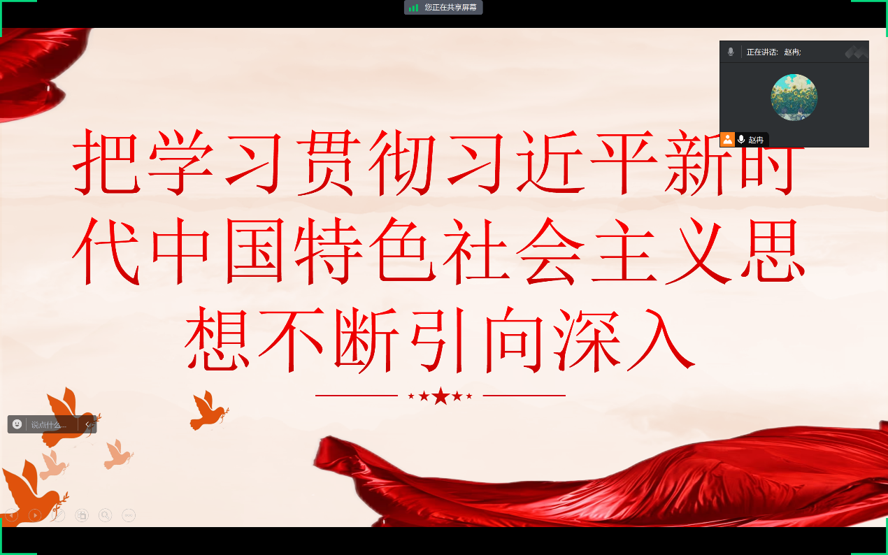 本科生党支部召开主题为《把学习贯彻习近平新时代中国特色社会主义思想不断引向深入》的线上学习党日活动,会议由分党校秘书长赵冉主持,全体党员参加。