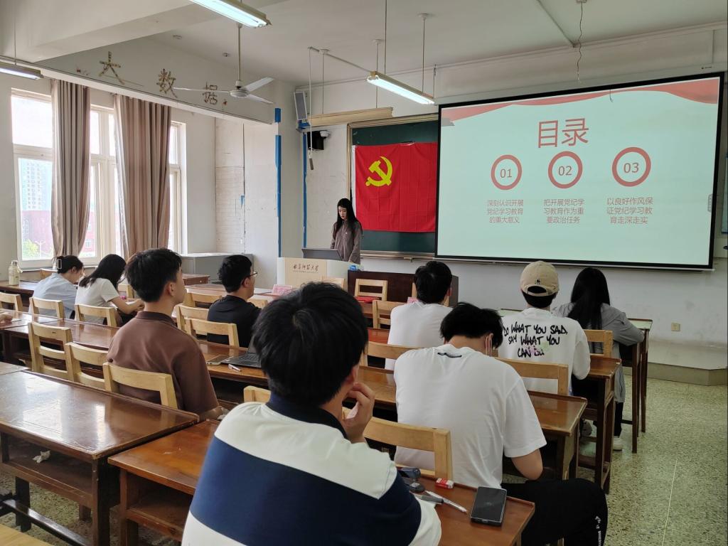 次党课,孙宇老师从把深刻认识开展党纪学习教育的重大意义和以良好作风保证党纪学习教育走深走实两方面,介绍了开展党纪教育对新时代青年的重要作用。点明党纪学习教育,是加强党的纪律建设、推动全面从严治党向纵深发展的重要举措。我们要深刻认识开展党纪学习教育的重大意义,不断增强高质量完成党纪学习教育任务的政治自觉、思想自觉和行动自觉。