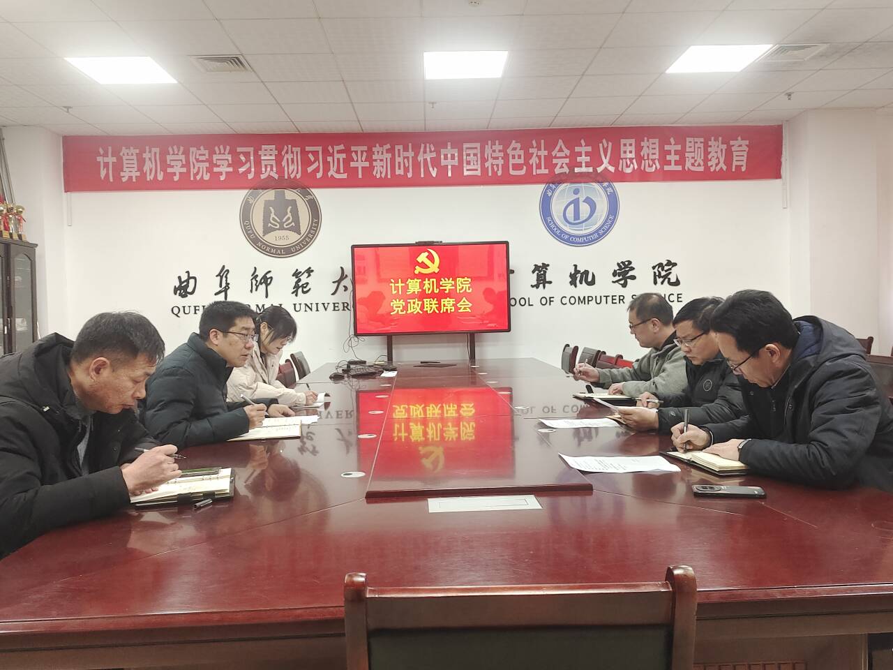 于JC1011召开党委会会议。计算机学院党委书记于健主持,学院领导班子全体成员参加,团委书记列席会议。