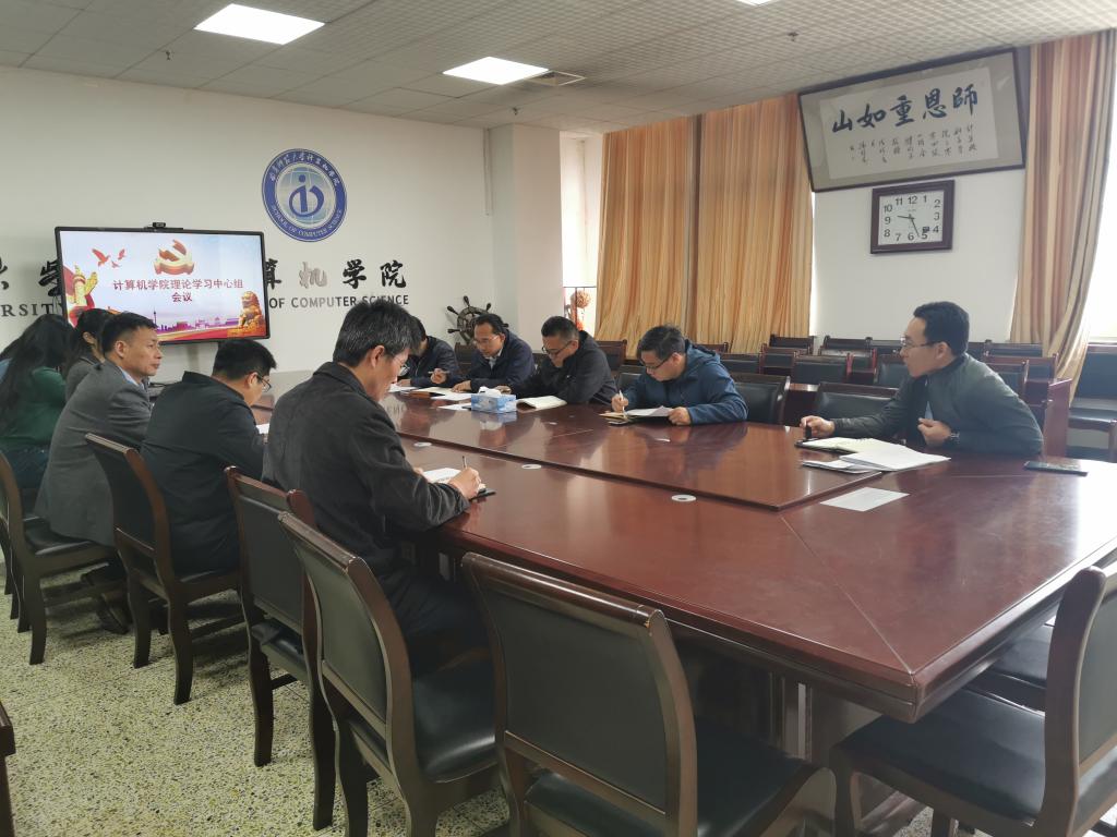 2021年10月19日上午,计算机学院党委理论中心组开展集中学习活动,会议由党委书记于健同志主持,党委理论学习中心组成员参加会议。学习内容为:1.习近平在中央民族工作会议上的讲话内容;2.中央教育局工作领导小组《关于深入学习宣传贯彻党的教育方针的通知》;3.习近平总书记回信勉励全国高校黄大年式教师团队代表的祝贺和诚挚祝福;4.习近平:解放思想改革创新再接再厉 谱写陕西高质量发展新篇章;5.习近平在中央人才工作会议上关于“深入实施新时代人才强国战略,加快建设世界重要人才中心和创新高地”的讲话。