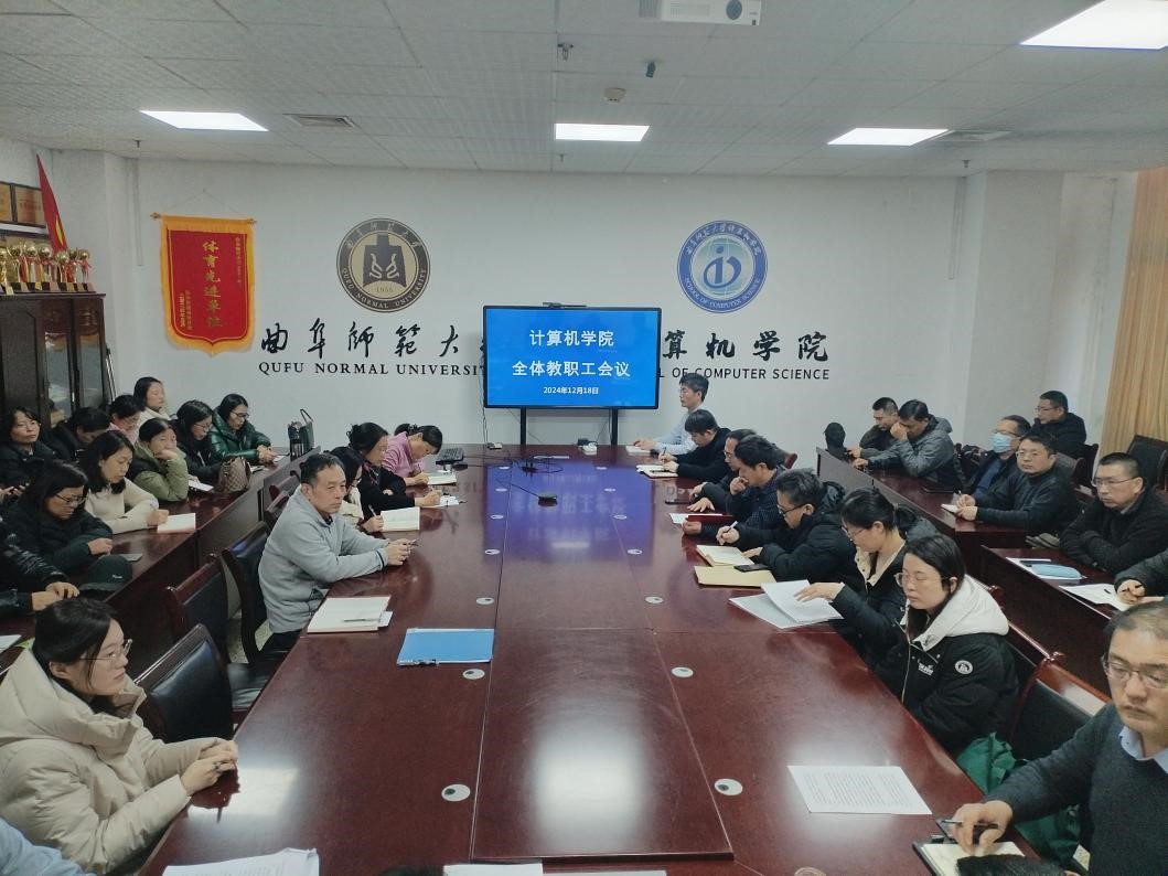 在学院会议室C1011召开教职工大会,全院教职工参会。