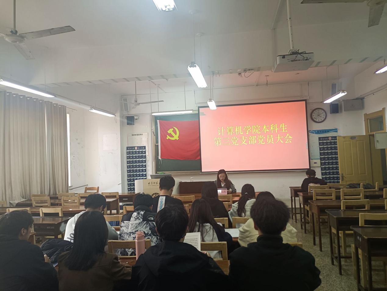为了贯彻党的路线、方针、政策,为学院党组织注入新的血液,2024年10月16日,斗地主 本科生第三党支部于JC408召开党员大会,全体党员参与。